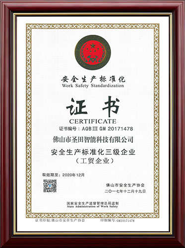 安全生產(chǎn)標(biāo)準(zhǔn)化證書