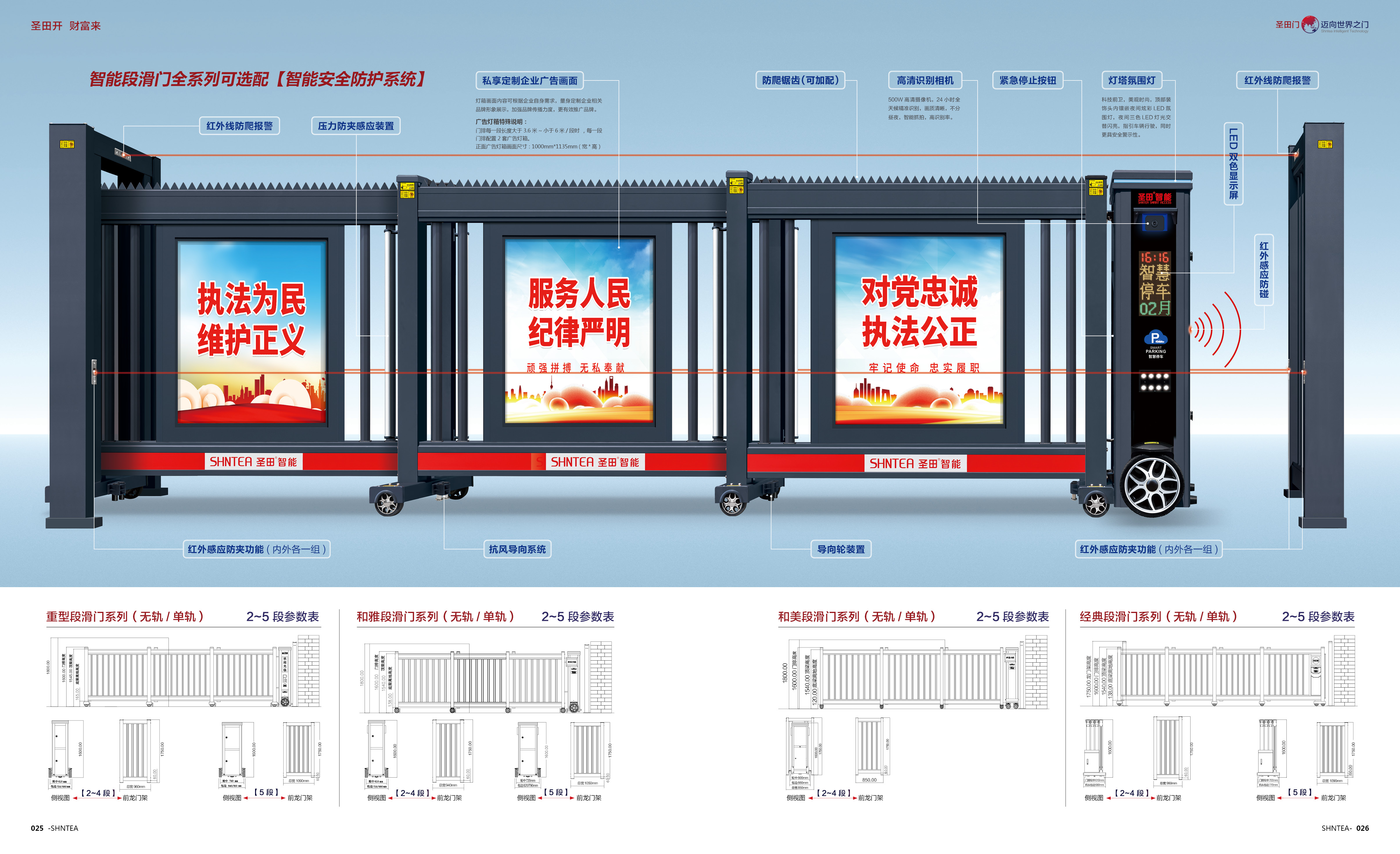 智能段滑門全系列可選配的【智能安全防護(hù)系統(tǒng)】。紅外線防爬報(bào)警為您的企業(yè)構(gòu)筑起堅(jiān)固的安全防線。機(jī)頭紅外感應(yīng)防碰和門體的壓力防夾感應(yīng)裝置完美協(xié)同,無(wú)論是在運(yùn)行過(guò)程中遭遇障礙物,還是門體關(guān)閉時(shí)感應(yīng)到壓力,都能迅速做出反應(yīng),有力確保人員和物品的安全。紅外感應(yīng)防夾功能(內(nèi)外各一組)搭配高清識(shí)別相機(jī),不僅貼心呵護(hù)每一次通行,有效避免夾傷事故的發(fā)生,還能精準(zhǔn)識(shí)別來(lái)訪人員和車輛進(jìn)出,為您對(duì)大門的管理更高效便捷。