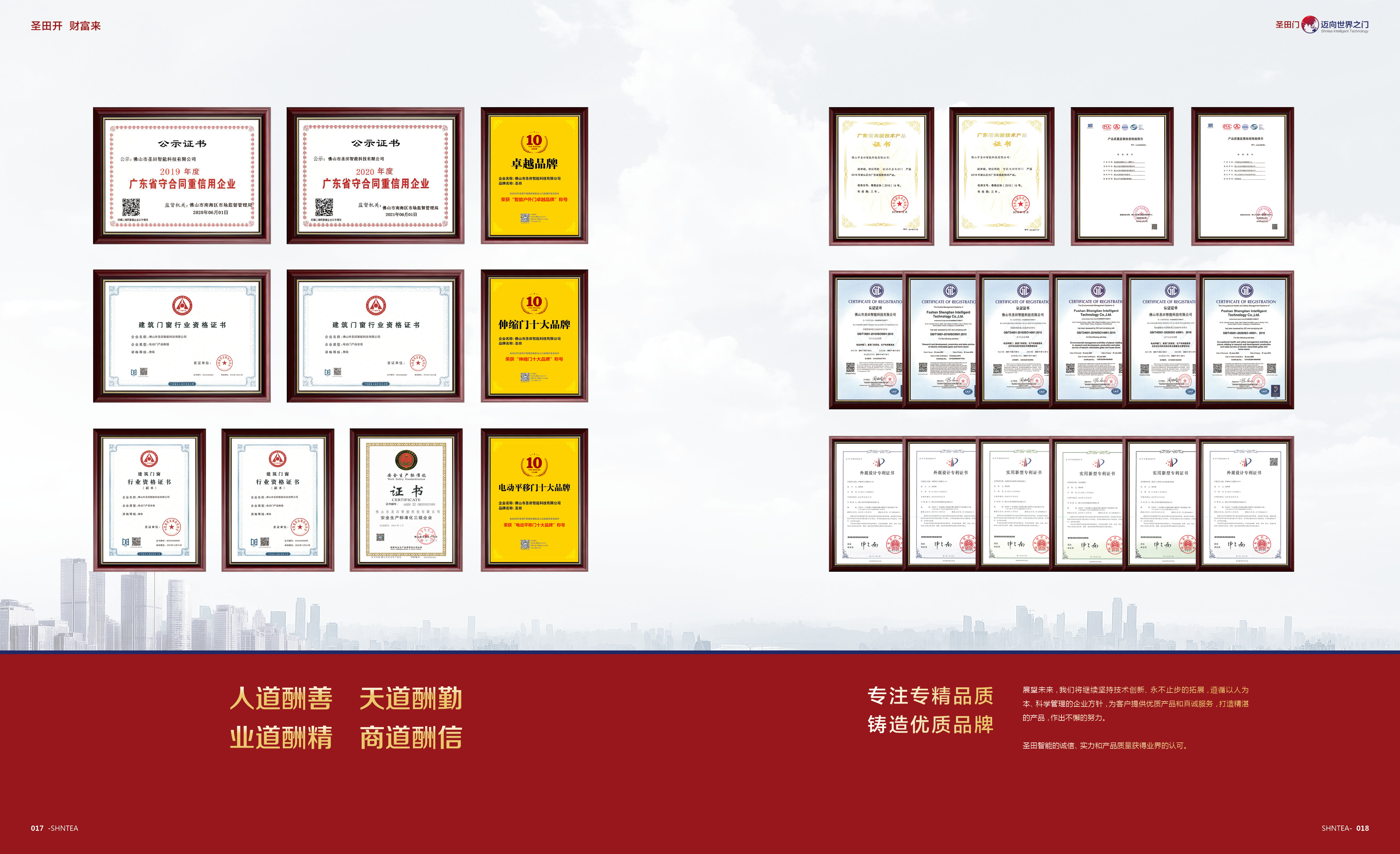 圣田智能,創(chuàng)立至今已經(jīng)23年載,榮獲“國家高新技術(shù)企業(yè)、廣東省“守合同重信用”企業(yè)、佛山市“專精特新”企業(yè)等多項(xiàng)榮譽(yù)。擁有自建廠房30000+平方生產(chǎn)基地,是一家集研發(fā)、生產(chǎn)、銷售、售后服務(wù)于一體的大型電動(dòng)門企業(yè),多個(gè)門窗領(lǐng)域配套構(gòu)建圣田整個(gè)產(chǎn)業(yè)系統(tǒng)。我們始終把“安全、智能、品質(zhì)”定為智能出入口安防第一要素,參與多項(xiàng)行業(yè)“團(tuán)體標(biāo)準(zhǔn)參編單位”,獲得多項(xiàng)獨(dú)立的知識(shí)產(chǎn)權(quán)及多項(xiàng)行業(yè)專利技術(shù)。